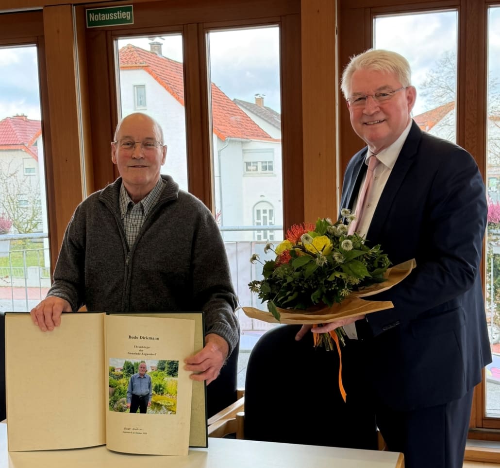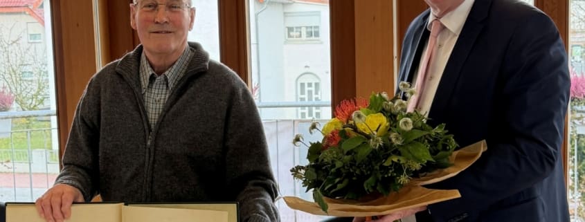 Bürgermeister Thomas Katzer betonte in seiner Ansprache die Bedeutung der Ehrung: „Mit der Eintragung in das Goldene Buch danken wir Bodo Diekmann für seinen langjährigen Einsatz und seine Vorbildfunktion für unsere Gemeinschaft.“