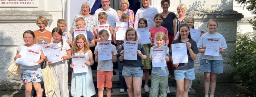 Alle Finalistinnen und Finalisten erhielten eine Urkunde sowie 100 Euro für die Schulbücherei – gestiftet von der Stiftung „Für Lippe“. Die drei Bestplatzierten wurden zusätzlich mit Büchergutscheinen der lippischen Sparkassen ausgezeichnet und dürfen bei der „Wortspielerei“, dem Kinder- und Jugendliteraturfest, noch einmal öffentlich lesen – diesmal vor großem Publikum. (PM, Detmold, den 18.06.2025)