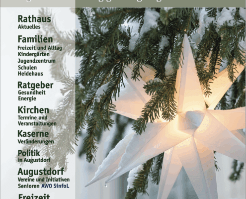 Die Weihnachtsausgabe „Der Augustdorfer“ befindet sich in der Finalisierung und geht in der kommenden Woche in den Druck. Pünktlich zum ersten Advent wird sie in alle Haushalte in Augustdorf verteilt.Wer noch Werbung…
