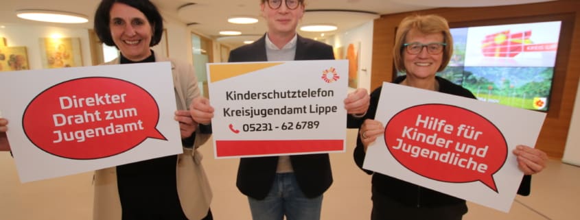 „Mit diesem Angebot geht der Fachbereich Jugend und Familie des Kreises Lippe einen weiteren wichtigen Schritt, um Heranwachsende zu schützen“, sagt Landrat Dr. Axel Lehmann. „Kinder haben ein Recht darauf, geborgen und gesund aufzuwachsen. Das zu gewährleisten, ist unser Auftrag“, ergänzt Dr. Olaf Peterschröder, zuständiger Verwaltungsvorstand beim Kreis Lippe. Doch damit die Mitarbeiterinnen und Mitarbeiter des Jugendamts überhaupt Hilfe leisten und Probleme lösen können, sind sie in vielen Fällen auf Hinweise aus der Bevölkerung angewiesen. Daher richtet sich das „Kinderschutztelefon“ sowohl an Kinder und Jugendliche als auch an Fachkräfte sowie alle Bürgerinnen und Bürger, die sich Sorgen um das Wohl von Kindern und Jugendlichen in den zwölf kreisangehörigen Städten ohne eigenes Jugendamt (also ausgenommen Detmold, Bad Salzuflen, Lemgo und Lage) machen. „Unser Leitsatz dabei lautet: Jedes Kinderschutzanliegen kommt an“, betont Ulrike Glathe, Leiterin des Fachbereichs Jugend und Familie.
