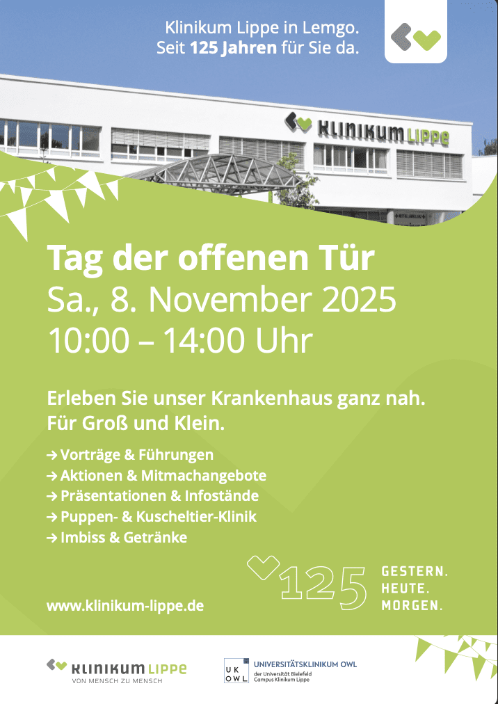 Am Samstag, 8. November 2025, öffnet das Klinikum Lippe in Lemgo von 10:00 bis 14:00 Uhr seine Türen für alle interessierten Besucherinnen und Besucher.