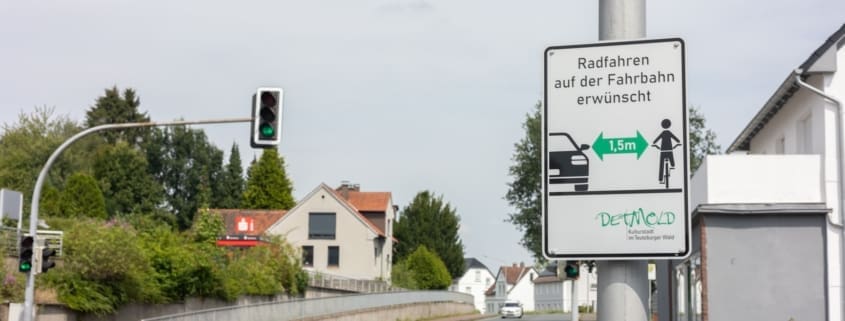 Detmold. An einigen Detmolder Straßen hängen seit kurzem neue Hinweisschilder. Sie tragen die Aufschrift „Fahrradfahren auf der Fahrbahn erwünscht“ und zeigen per Piktogramm einen Abstand zwischen Pkw und Fahrrad von 1,5 Metern an. Dabei verfügen diese Straßen auch über einen Fahrradweg. Was also hat es mit den Schildern auf sich? Heißt es das nun, dass die Radwege nicht mehr benutzt werden sollen?